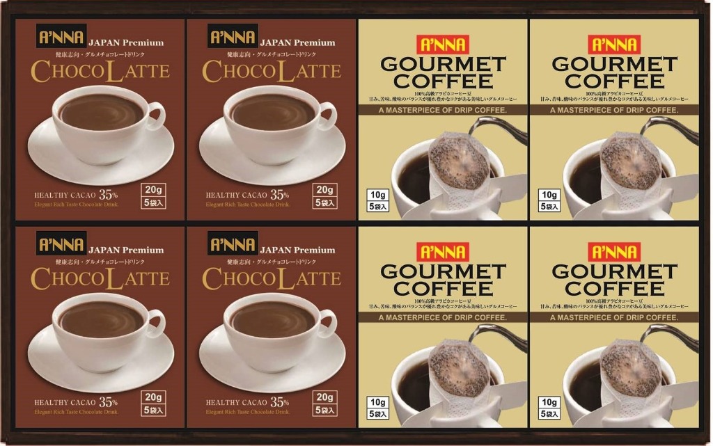 9月のお勧め商品は、グルメコーヒー20杯分、チョコレートドリンク、緑茶カプチーノとコーヒーのA’NNA逸品ギフト50AM、それにチョコレートドリンクとコーヒーのみのA’NNA逸品ギフト40AEの3種です。 9月30日まで通常の2割引きでお求めいただけます。